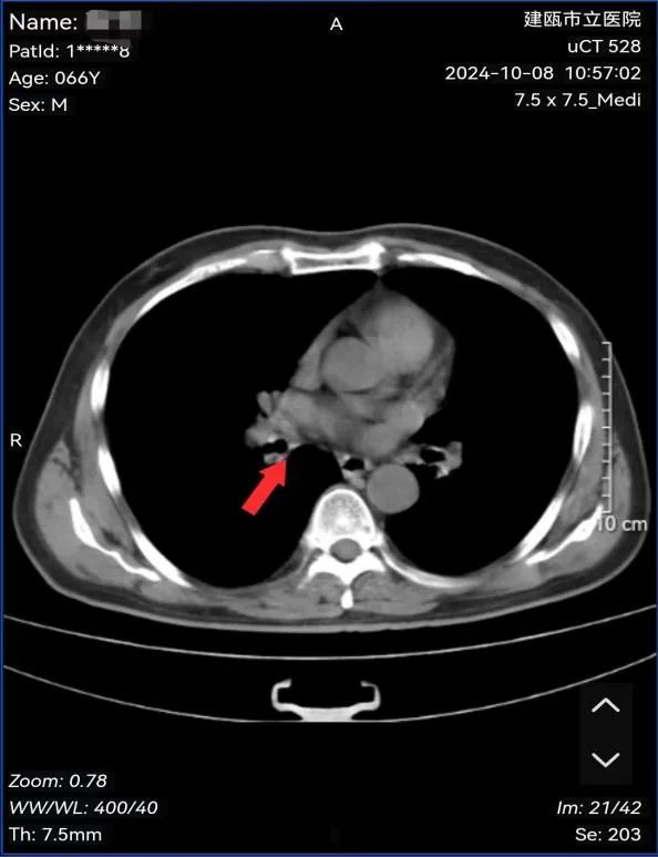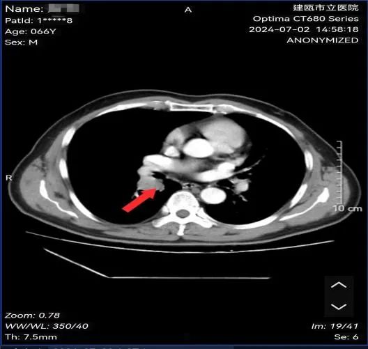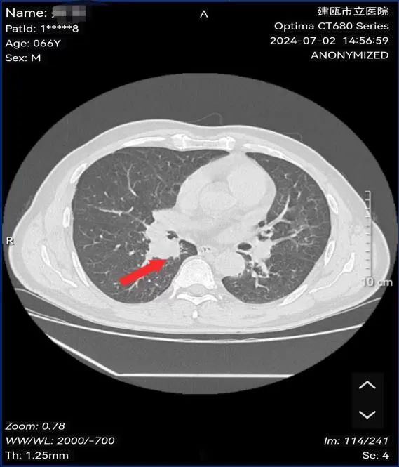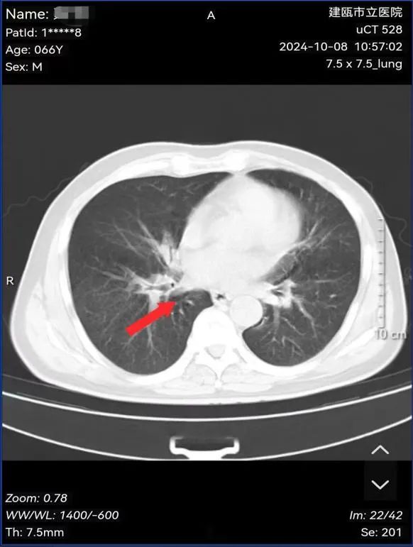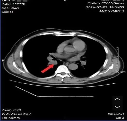 图为:治疗后病灶影像结果(原右肺下叶病灶消失)