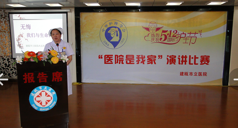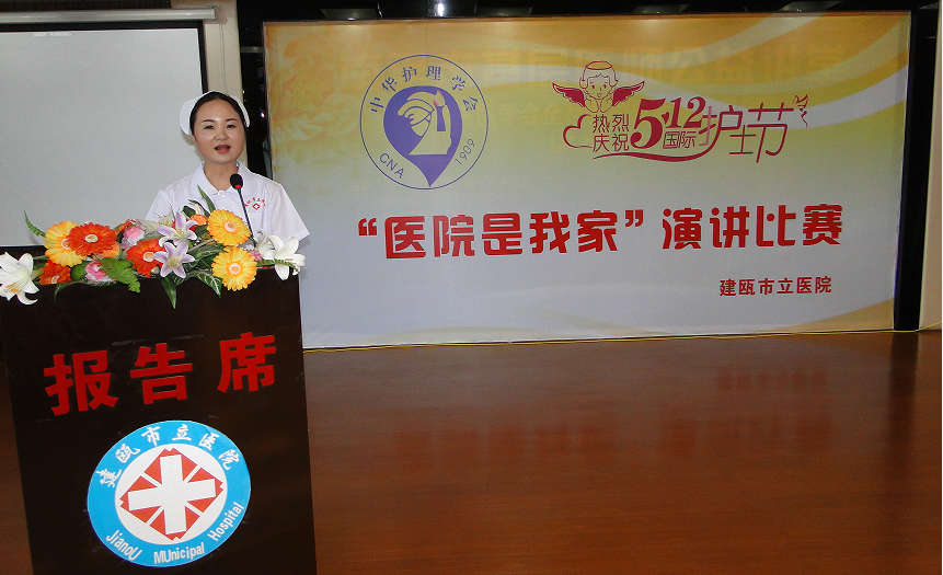 为迎接“5.12”国际护士节到来,弘扬南丁格尔精神,建瓯市立医院护理部于5月5日下午举办了以“医院是我家”为主题的护士演讲比赛。