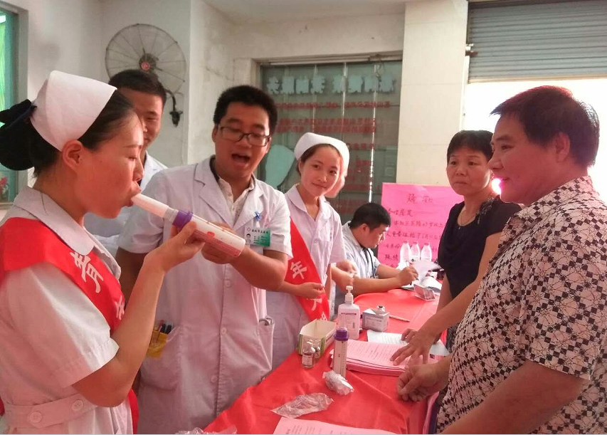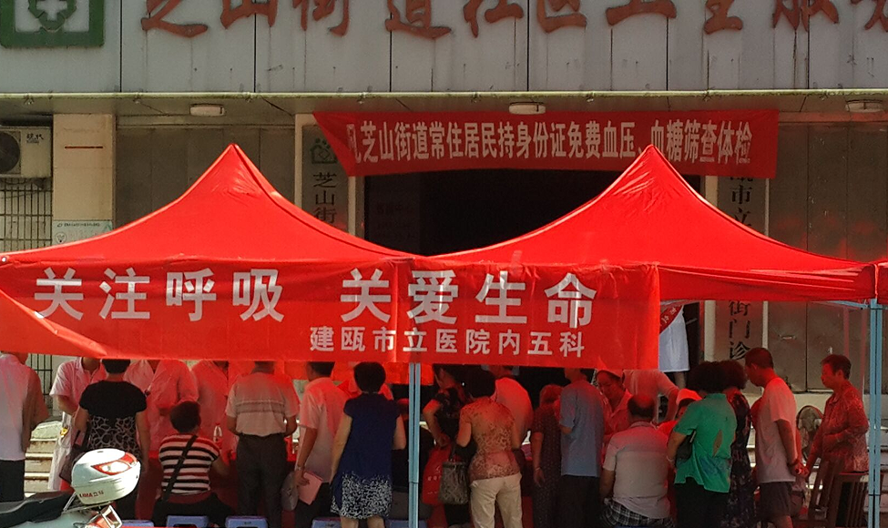 “关注呼吸 关爱健康”是“红围巾关爱行动”的后续,是由国家卫计委指导,中国医院协会主办、国家呼吸内科医疗质量控制中心提供专业提导的“慢性阻塞性肺疾病/支气管哮喘疾病规范管理项目”,在去年的宣教活动深爱市民的欢迎。作为省级“青年文明号”的市立医院呼吸内科今年再次与芝山社区卫生服务中心联合举办这次义诊及宣教活动,旨在把对哮喘及慢阻肺的防治知识延伸到社区及每个家庭。活动现场,市民们早早的排起了长队,呼吸内科和社区的医护人员顾不上炎炎烈日,细心地为前来的每一位市民进行肺功能筛查、信息收集、测量血压、测血糖和健康咨询,耐心解答他们的疑问,并为部分患者开具进一步肺功能检查申请单,方便患者。短短的三个多小时,诊疗咨询约达180人次,受到了市民的一致好评。
