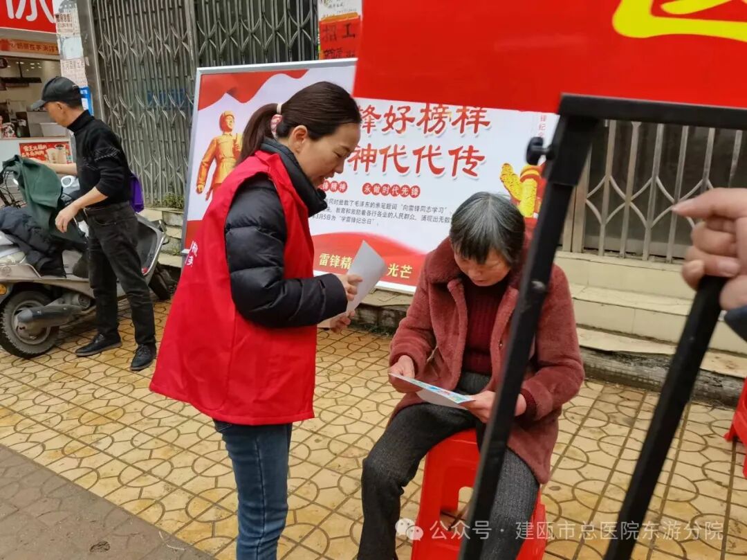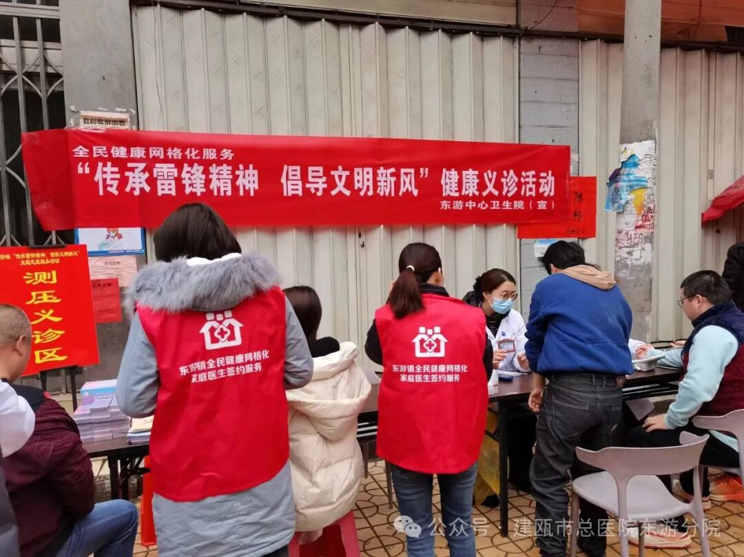 三月是春风和煦、生机勃勃的季节,更是讲文明、树新风、让雷锋精神吹遍基层社区每个角落的季节。为更好传承雷锋精神,倡导文明新风,庆祝三八妇女节,2024年3月5日上午,建瓯市东游中心卫生院“4+N”全民健康网格化服务团队志愿者在集镇热闹地段组织了一次健康义诊活动。这次活动旨在通过免费的医疗服务,提高公众的健康意识,传播健康知识,传承雷锋精神,倡导文明新风,促进社会和谐与进步,以实际行动守护女性健康,为妇女同胞献上一份节日的祝福。