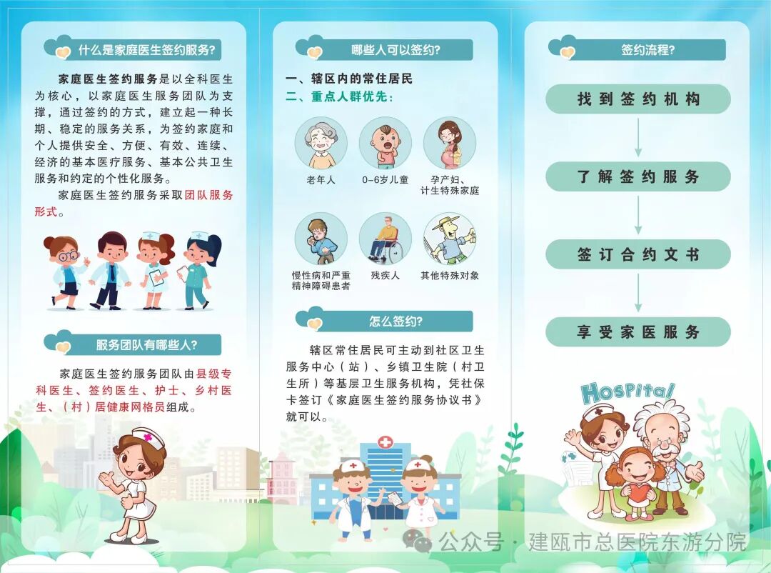 您在家期间,如果需要给家人或自己定制一个这样的服务,只需要配合签约医生做好四项工作即可:签约时需要与家庭医生签订协议书,并提供您的社会保障卡进行插卡签约。为保证服务有效性及后续服务的开展,请您准确告知并填写自己的个人信息及联系方式,如有变动及时通知。为保证签约医生服务的准确性及高效性,需要配合即时更新个人健康信息,请您将自己的健康状告如实告诉签约医生,配合医生建立或更新您的个人健康档案,和签约医生一起努力做好您的健康管理。为保证签约服务的连续性和就诊的高质量,请您尽量在签约医生处首诊,需要转诊到上级医院时可在签约医生处预约并按时到达就诊科室。签约家庭医生,您可以享受最舒适、便捷的医疗服务,欢迎大家前来垂询。祝您和您的家人生活愉快、万事如意。