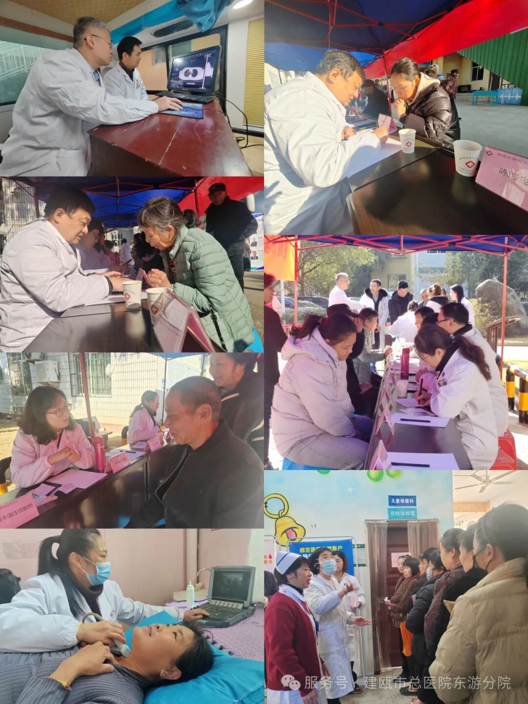 为深入贯彻优质医疗资源下沉共享的理念,全力攻克基层群众看病就医过程中的“急难愁盼”难题,1月5日,建瓯市总医院与福建省肿瘤医院携手,将先进的移动CT车开进了建瓯市东游中心卫生院。一时间,东游中心卫生院热闹非凡,一场多学科联合大型公益义诊活动在此火热开启,为当地村民带来了家门口的“三甲”优质医疗服务体验,让村民们切实感受到医疗关怀的温暖与便捷 。一位刚刚做完肺部CT扫描的张大伯感慨地说:“咱农村人,平时有点小毛病也就扛着,哪想到还能有这么专业的大医院医生到咱家门口来给咱做检查、讲知识。这可真是帮了大忙了,心里踏实多了!”像张大伯这样的心声,在现场此起彼伏。活动现场,移动CT车格外引人注目。这辆车上搭载着专业的CT检查设备,能够快速、精准地为村民进行身体检查,为疾病的早期诊断提供有力依据。与此同时,甲乳彩超检查也在有条不紊地同步进行着。专家们从影像特征的分析,到可能引发疾病的因素探讨;从诊断方向的确定,到个性化治疗方案的拟定,每一个环节都经过反复斟酌与论证。通过这样的讨论,不仅确保了诊断的准确性,更为后续的治疗提供了坚实的依据,让每一位接受检查的村民都能得到最为科学、合理的诊疗建议。福建省肿瘤医院、建瓯市总医院、市妇幼保健院的胸外科、呼吸内科、肿瘤科、妇产科等多学科专家组成的义诊团队也在现场忙碌而有序地进行着。专家们耐心地为每一位前来咨询和就诊的村民进行详细的问诊、体格检查,为村民们制定个性化的治疗方案和健康指导。