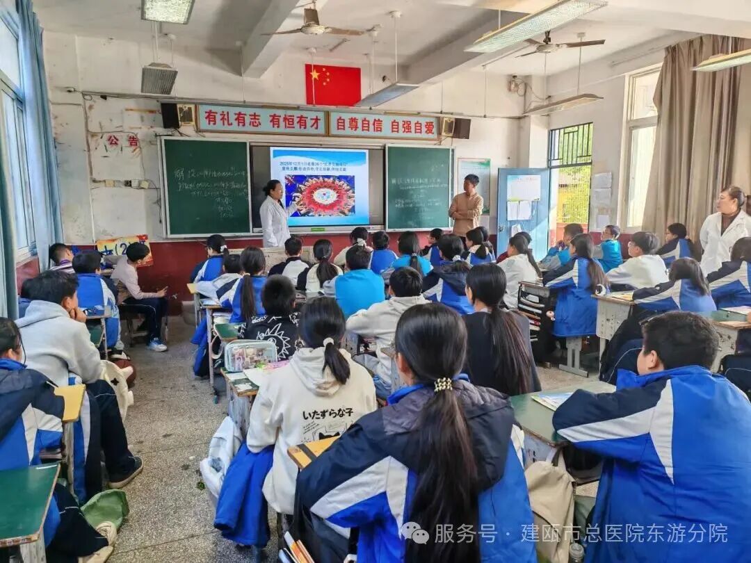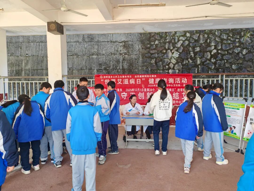 东游中心卫生院迅速响应,于11月26日组织防疫骨干团队深入辖区东游中学,将前沿的防治理念和专业知识带进课堂,为115余名师生提供健康指导。邹丽嫔副院长强调:“我国母婴传播率已降至2%以下,但青少年感染率上升趋势明显,校园防艾教育刻不容缓。”