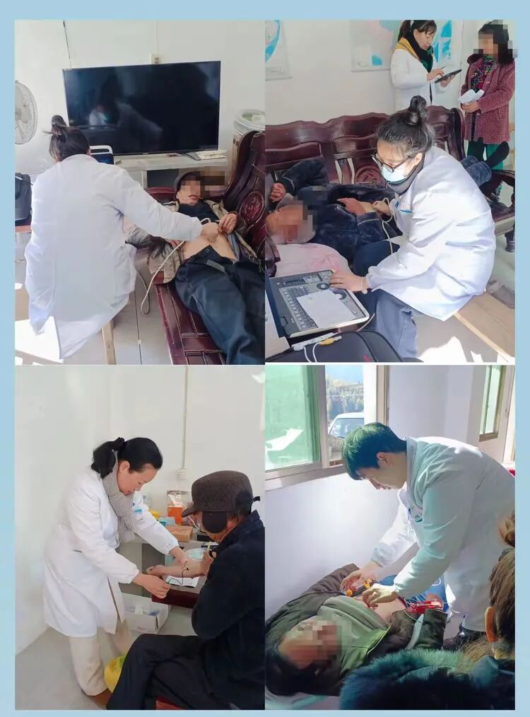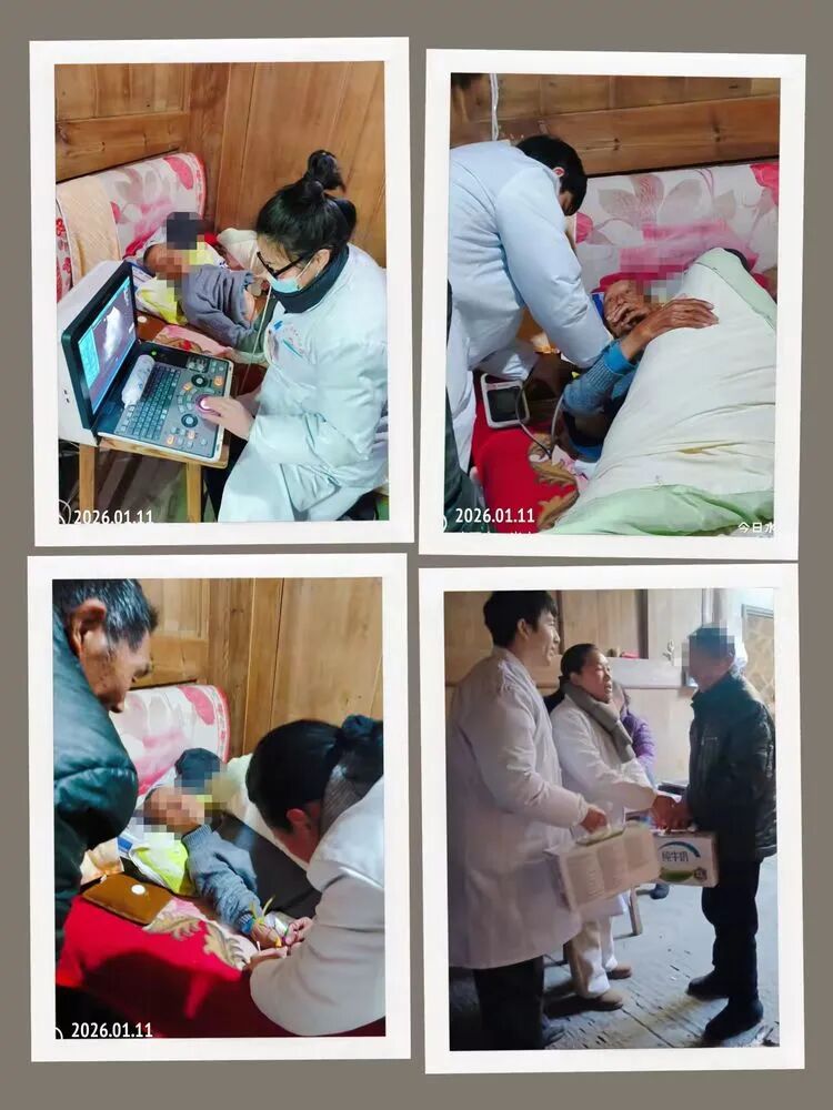 在李大爷家,团队成员轻手轻脚为卧床老人整理被褥,细致完成B超、心电图、测血压、听心肺、抽血等体检项目,还询问饮食起居、解答护理疑问。“老人腿脚不便,没法去镇上体检,你们真是帮了大忙!”家属感激不已。团队随后为李大爷送上慰问品,叮嘱家属密切关注老人身体,有问题可随时联系家庭医生。