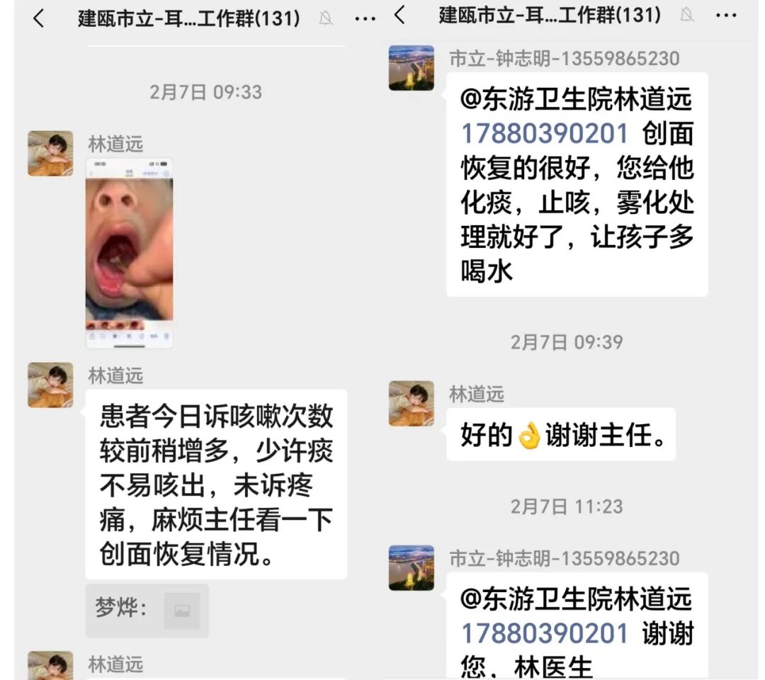 市立医院耳鼻喉科专家通过医共体诊疗沟通群实时在线指导,随时解答诊疗疑问,确保患儿的康复治疗与市直医院同标准、同质量,让基层康复有了 “专家靠山”。